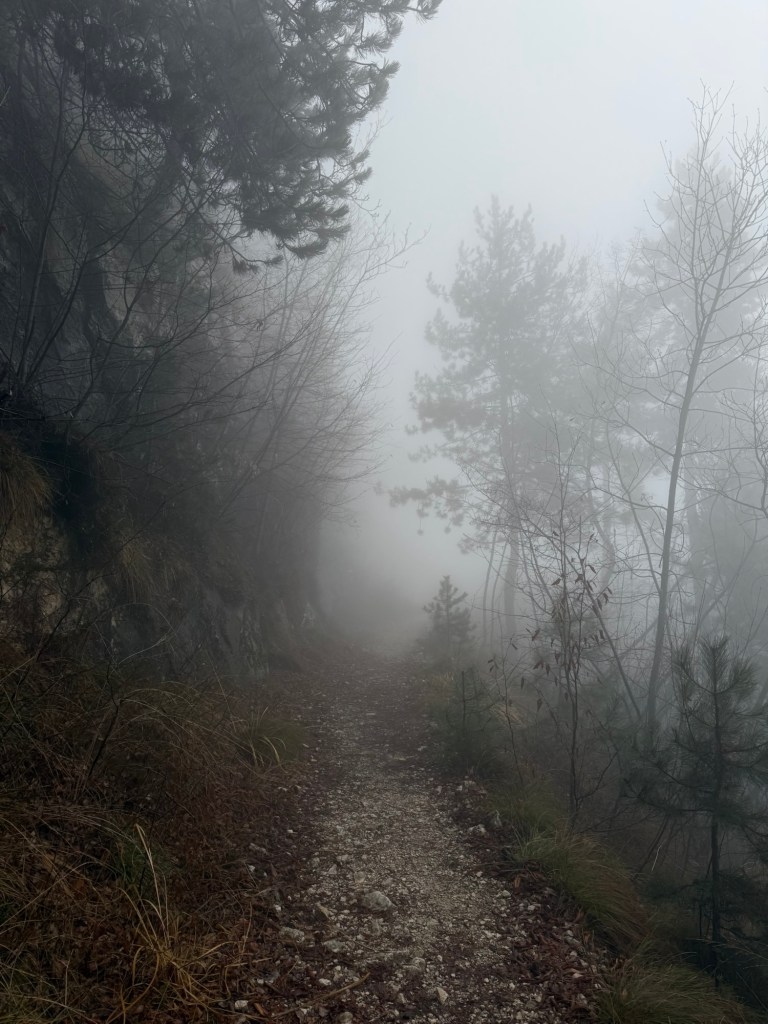 Zwei Tage später, am 13. März, ging’s weiter nach Riva del Garda. Dort wartete die Via Ferrata dell’Amicizia – ein Klassiker mit Blick über den Gardasee. Das Wetter? Ein Mix aus Sonne, Nebel, Schnee und kurzen Regenschauern. Der Steig war technisch nicht schwer, aber landschaftlich ein Highlight. Danach kurz ins Wasser, kurz durchschnaufen, und dann weiter – der Regen zog nämlich überall auf.